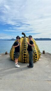 これは岡山と直島に旅行に行った時の写真です。草間彌生の有名な作品の前でバッチリ決めてきました✨