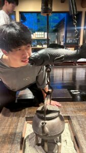これもその時の写真です。帰りに寄った温泉でのワンシーンです。吉尾君は食欲が旺盛なのでこういったものも食べようとするので、大変です。。。